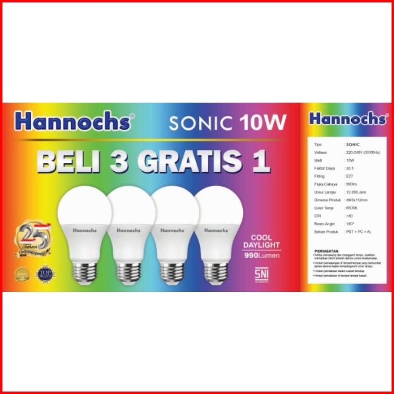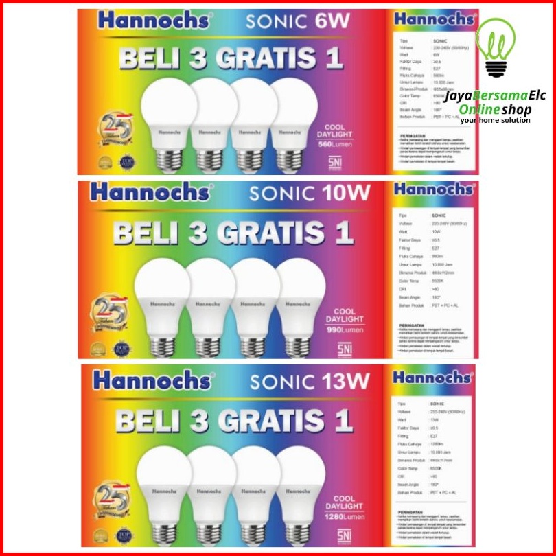 Lampu Led Bohlam Paket Hemat Beli 3 Gratis 1 Hannochs Sonic 6w 10w 13w 18w Watt Original