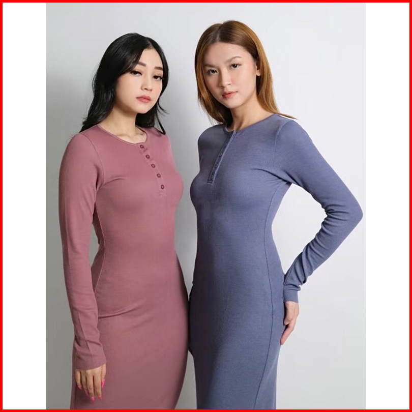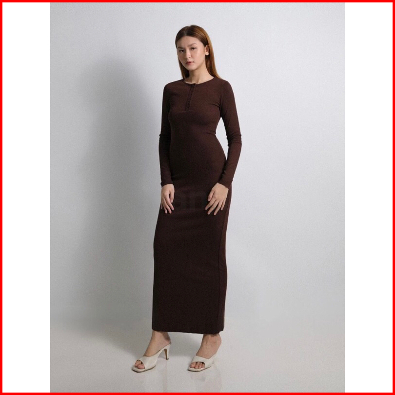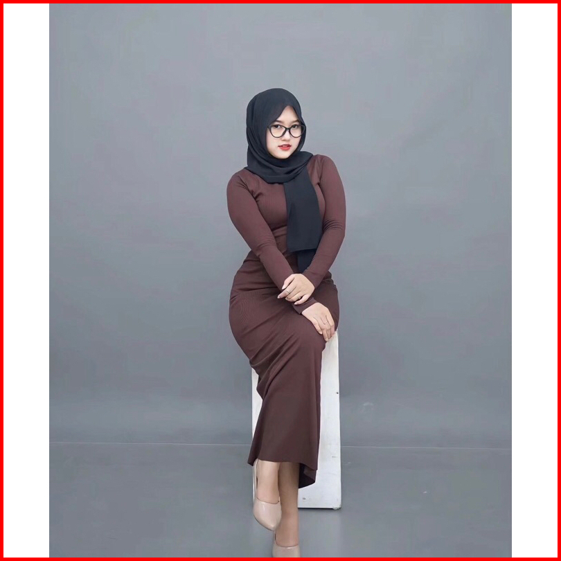 Afni.fashion Arisha Casual Long Dress Dress Rib Knit Premium Outfit Wanita Casual Korea