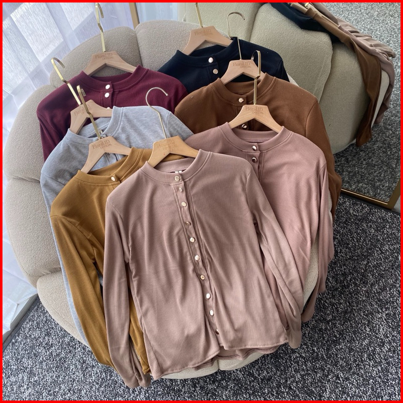 Floral.id Tissa Cardigan Wanita Atasan Knit Wanita Korean Top Kaos Wanita Lengan Panjang Basic