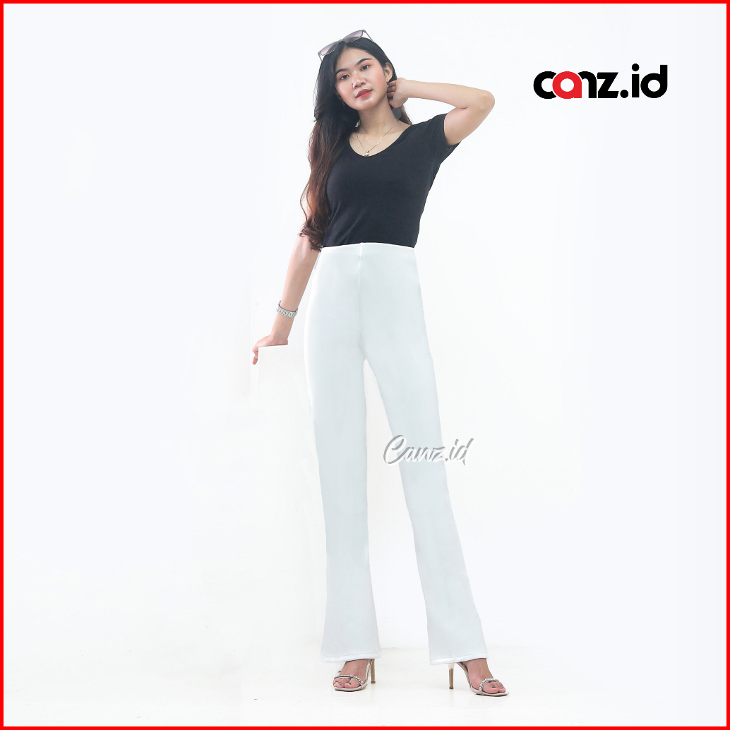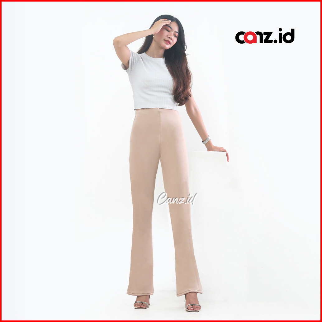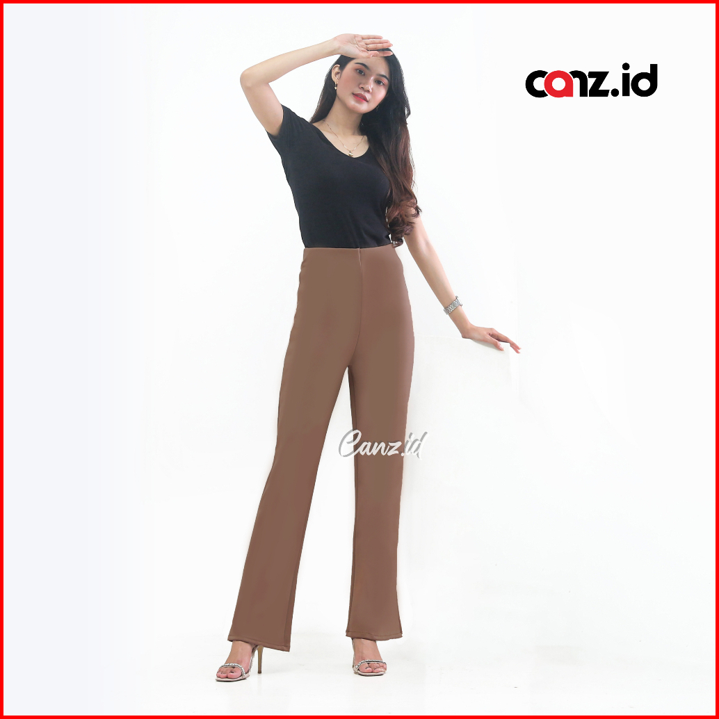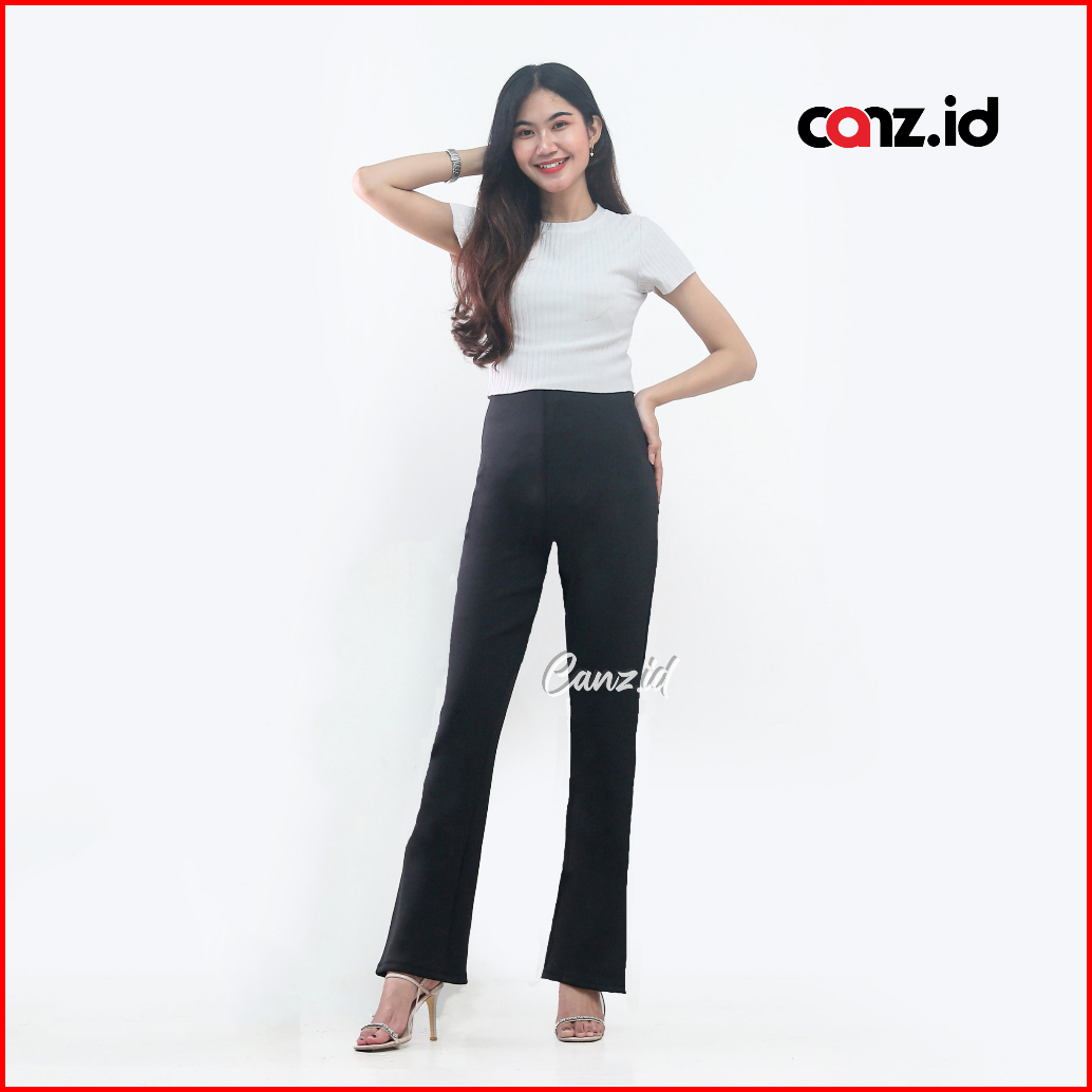Canz.id Flared Pants Cutbray Highwaist Celana Panjang Wanita Hitam Celana Kerja Kantor Stretch