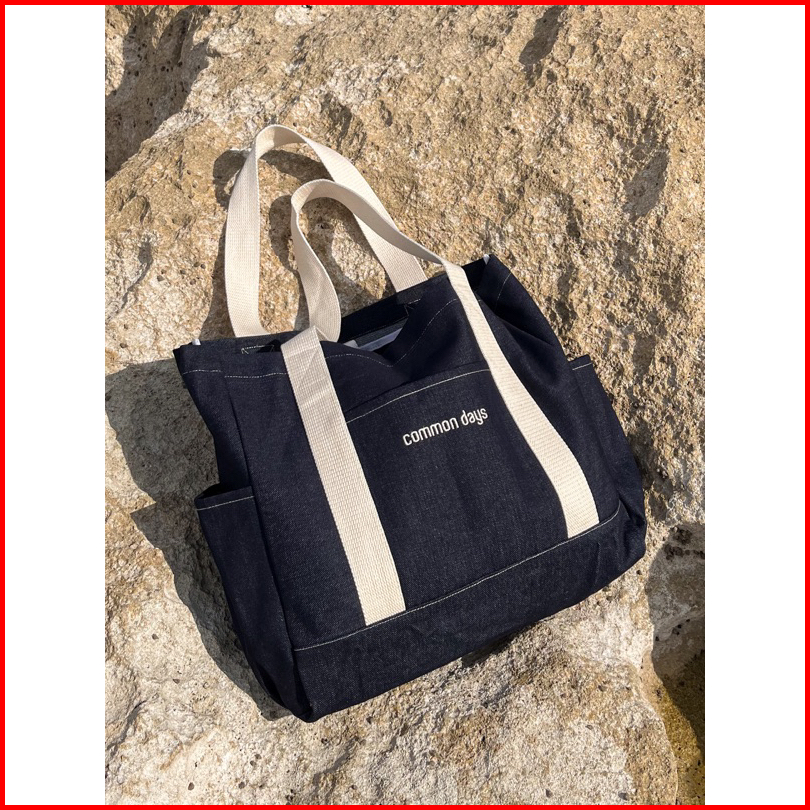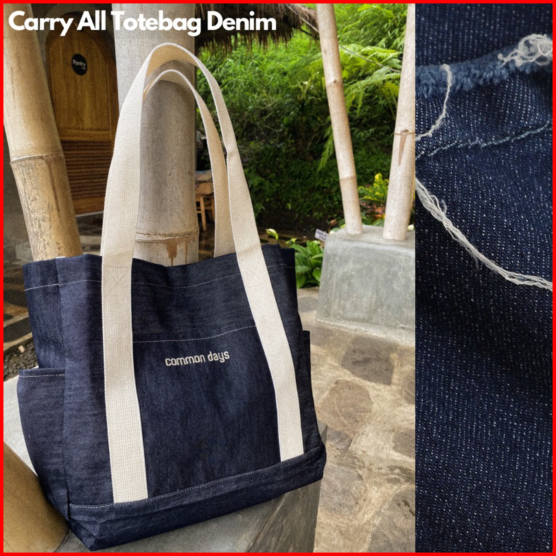 Carry All V1 Denim Totebag Blue Black Vintage Kuliah Tebal Premium Laptop Tumbler
