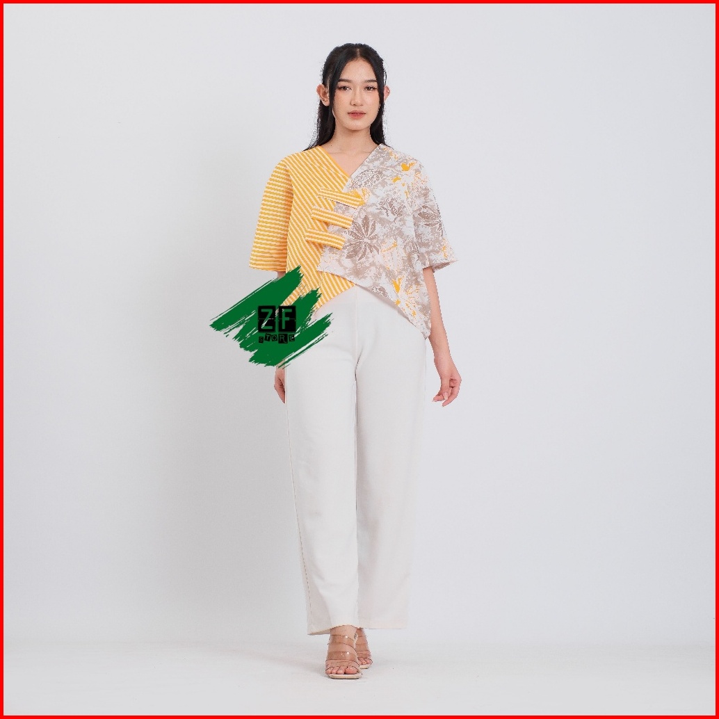 Croptop Ethnic Batik Kombinasi Blus Kerja Kantor Casual Atasan Model Oversize Terbaru 2023