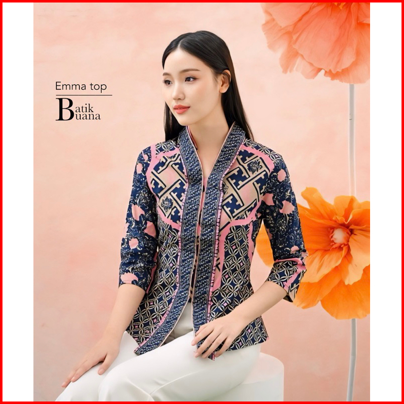 Atasan Batik Blouse Wanita Emma - Blouse Batik Wanita - Batik Premium - Atasan Batik - Batik Wanita - Batik Wanita Premi