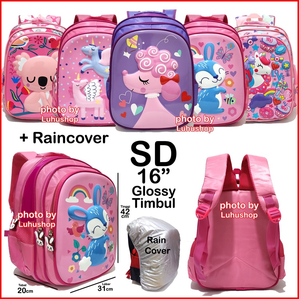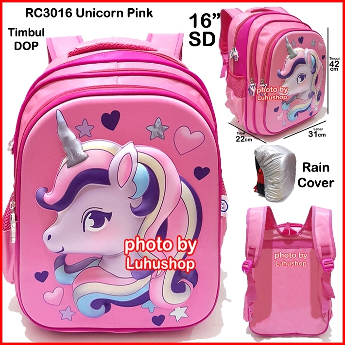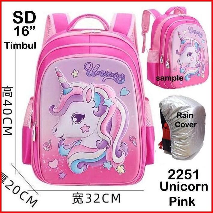 Tas Rain Cover Jas Hujan Mantol Sd Ransel Tas Anak Perempuan Sekolah Cewe Unicorn Timbul Tas Anak Perempuan Ransel Anak