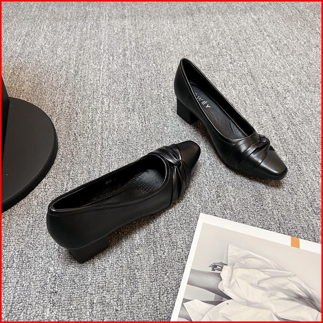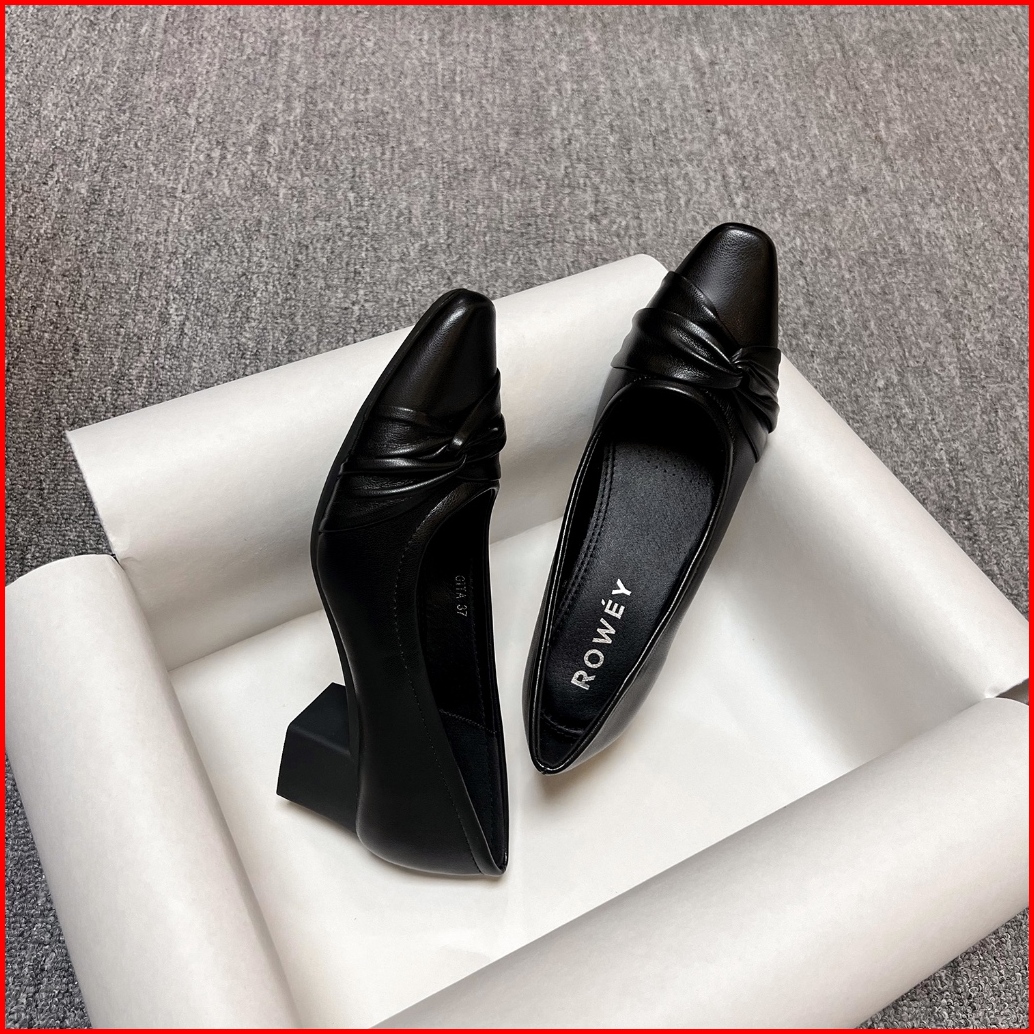Rowey Sepatu Pantofel Hitam Wanita Hak Sedang Gita