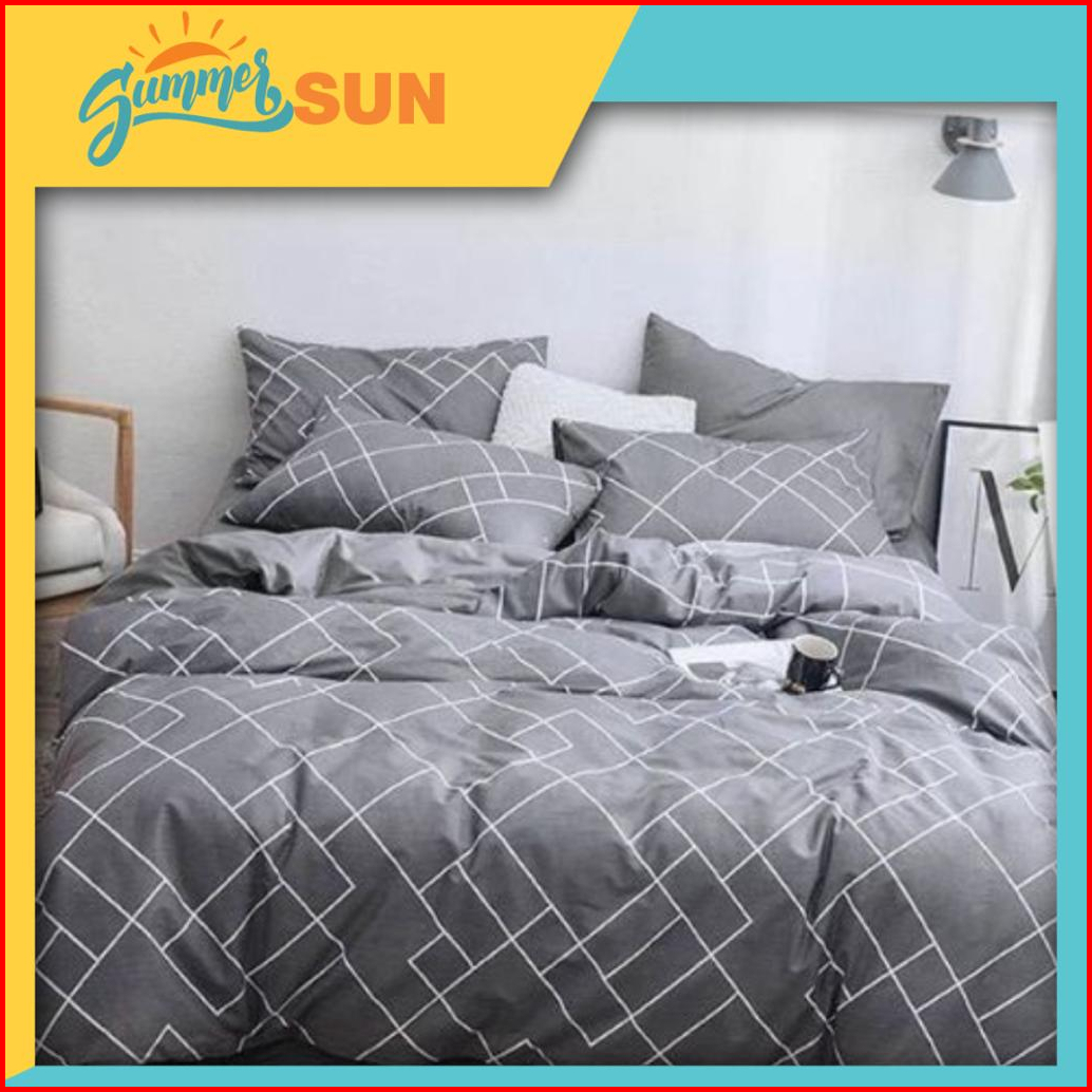 Bed Cover Set Abu Garis Kotak Gray Neva - Summersun09