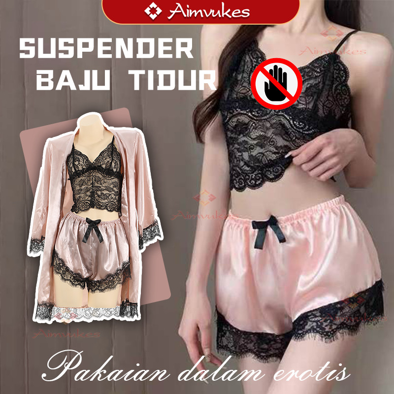 FLASH SALE TerlarisLingerie Kimono Silk Set Piyama Satin Baju Tidur Wanita Premium 4 PCS