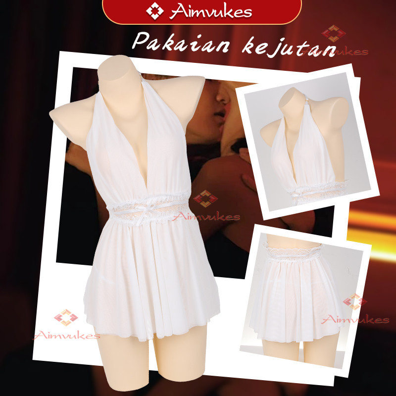 FLASH SALE Gaun Malam Pakaian Rumah Leher Halter Rok Jaring Dua Lapis Tembus Pandang Desain Punggung Terbuka Godaan Wanita Seksi