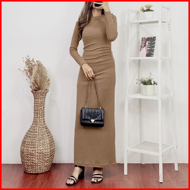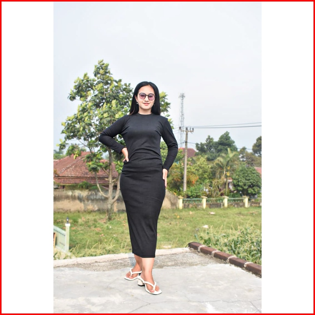 Arina Long Basic Dress Knit Wanita Casual Eleganza.id