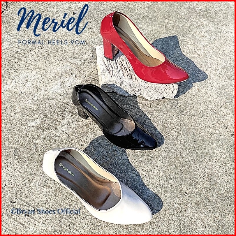 Bryan Meriel Pantofel Heels Tahu 5cm 9cm Polos Glossy Formal Kantor Jumbo Oversize Bigsize 36-41 42 43