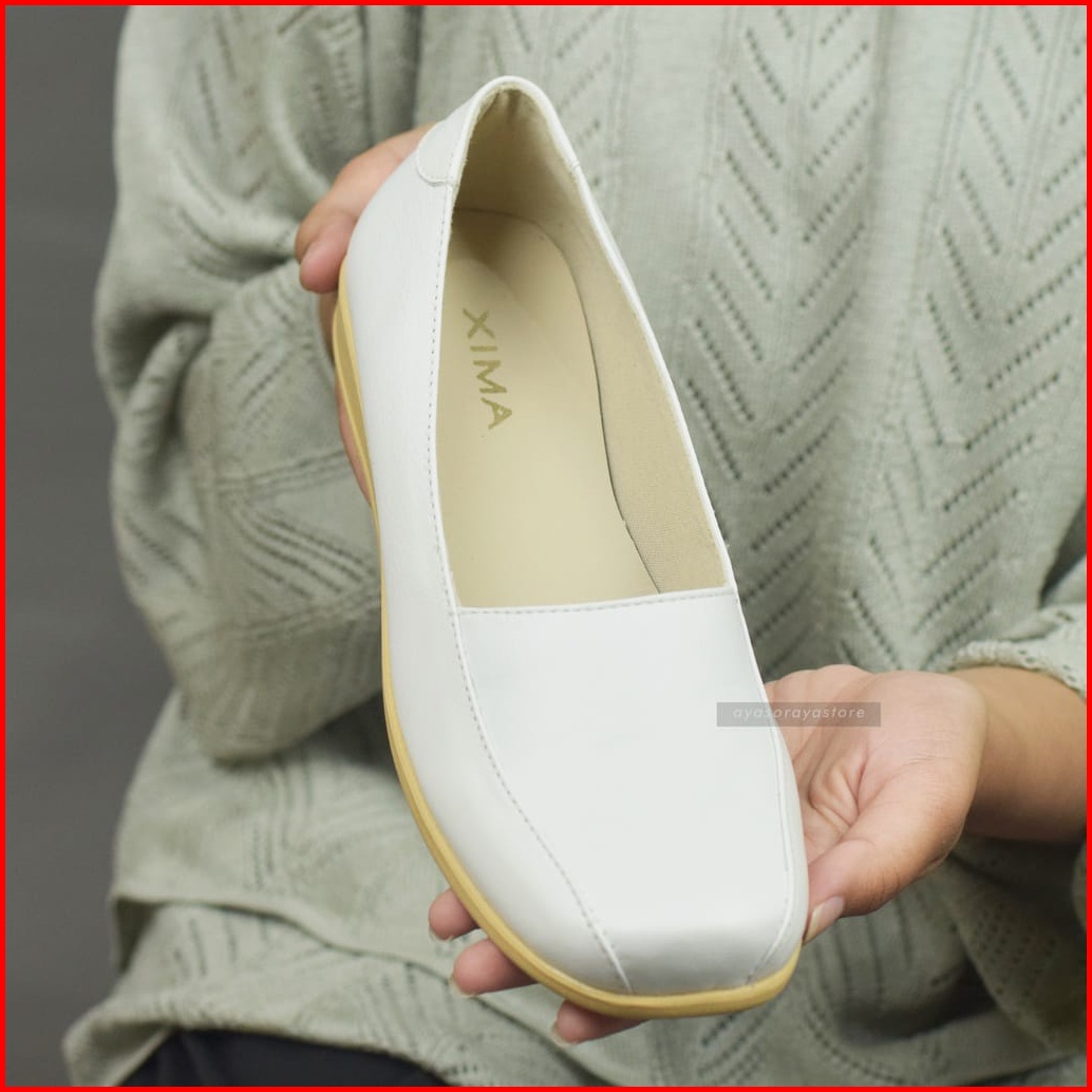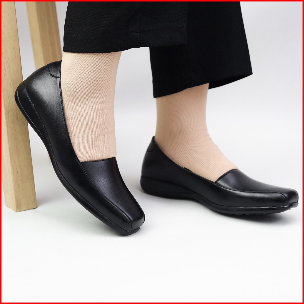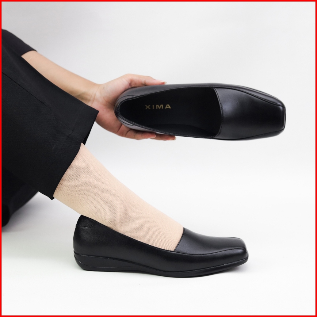 Sepatu Pantofel Formal Kerja Wanita Hitam Slip On Bahan Kulit Sapi Asli Dengan Ukuran Jumbo Big Size - Xima Marissa