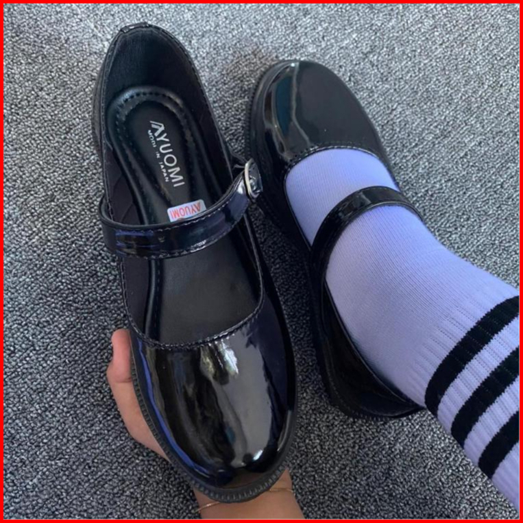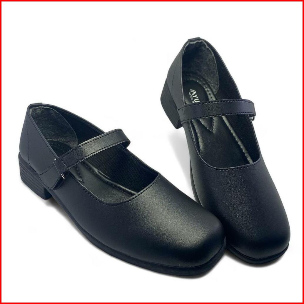 Yuomi Sepatu Pantofel Wanita Hitam Hak 3 Cm Cewek Sekolah Kantor Paskib