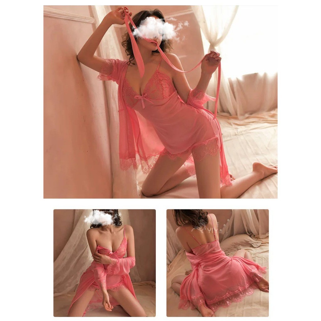 FLASH SALE Baju Tidur Wanita kimono Set Renda transparan Piyama【4Piece Set】