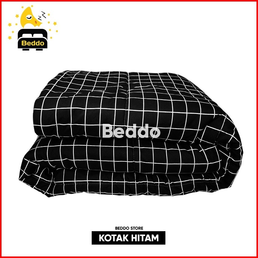 Bedcover Saja 120x220 Motif Kotak Kotak Aesthetic Hitam Biru Putih Abu