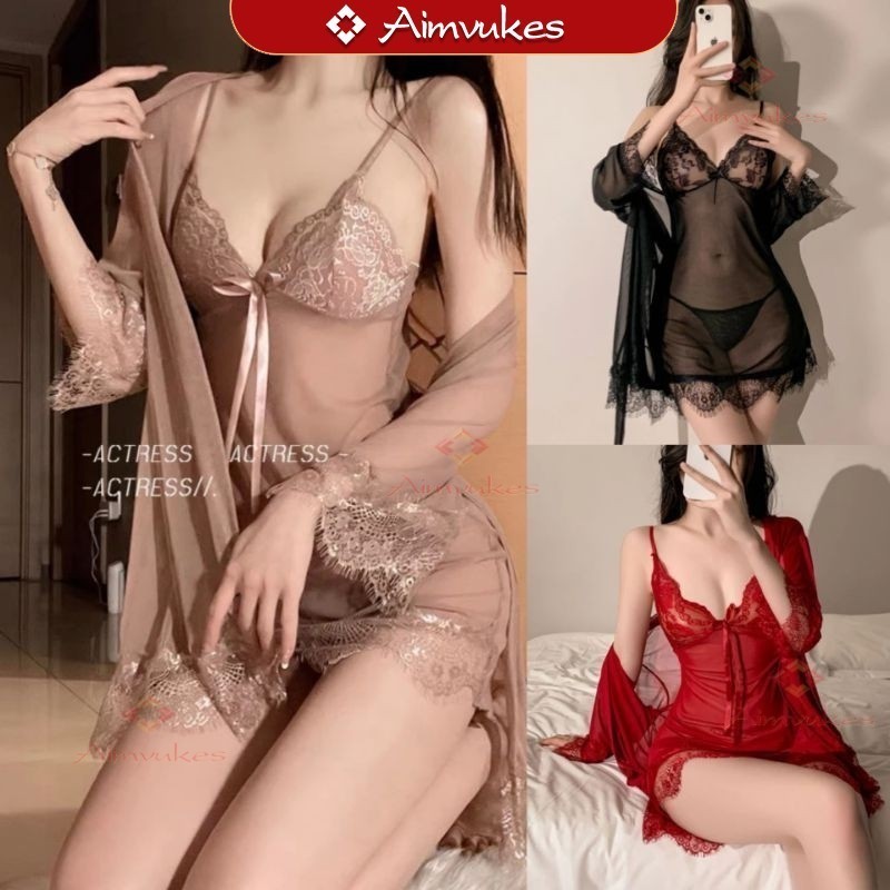 FLASH SALE Set kimono lingerie seksi transparant Lingerie Kimono Set