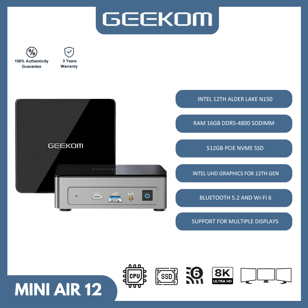 Geekom Mini PC Air 12 Intel N150 RAM 16GB DDR5 512GB SSD Windows 11 Pro PC Mini Office Gaming Wifi