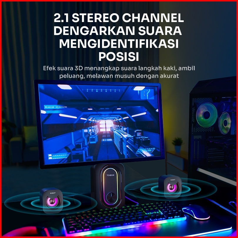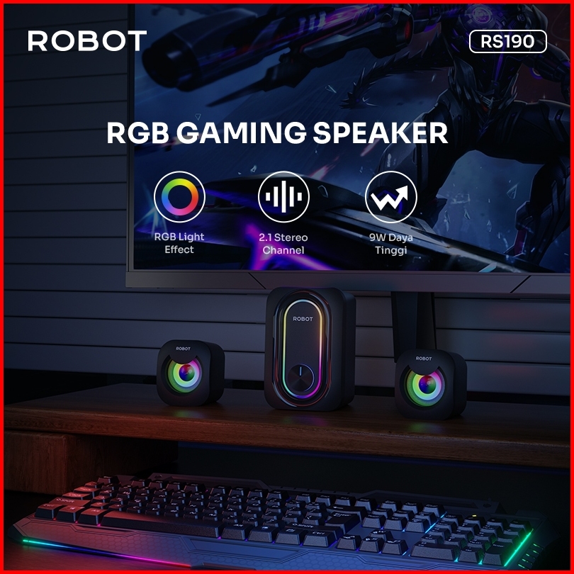 Robot Rs190 Speaker Komputer Laptop Gaming Soundbar Super Bass Portable Rgb Lighting Garansi 1 Tahun