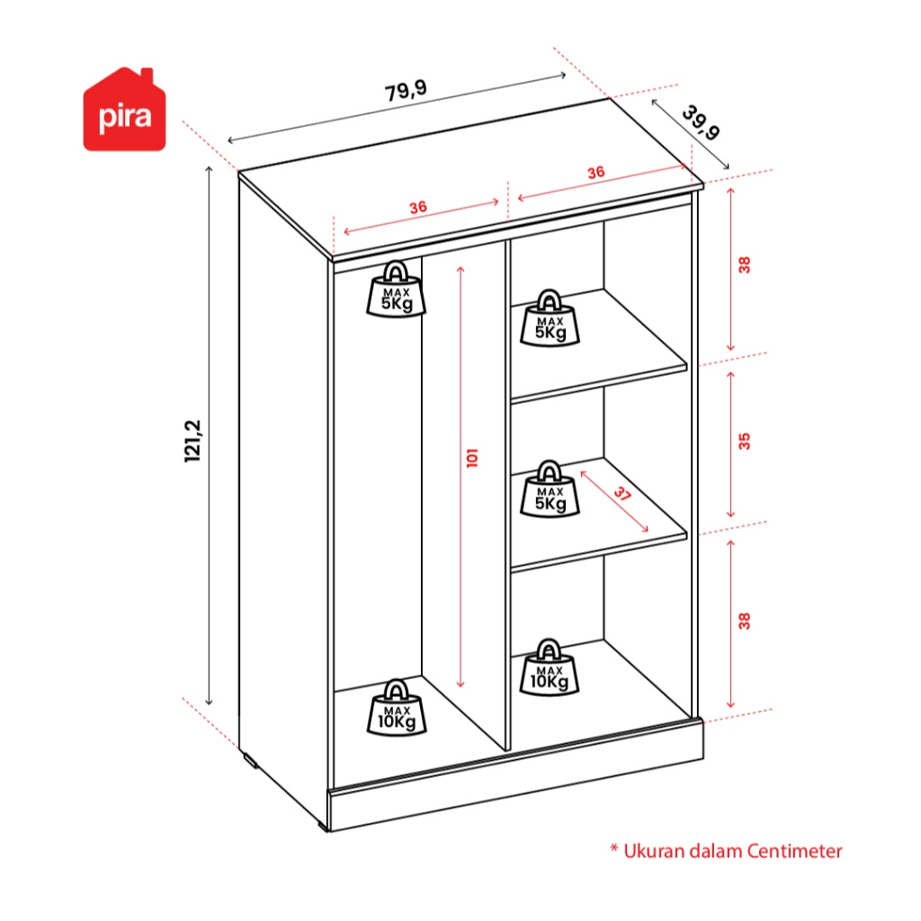 PIRA - YORK BL80 Lemari Pakaian Kecil 2 Pintu / Lemari Baju