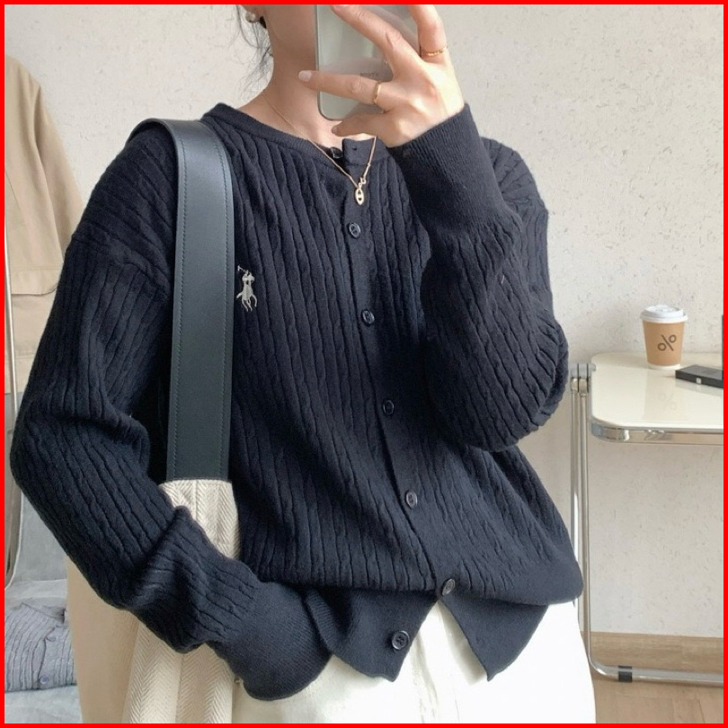 Storedelune - Julee Knit Cardigan Premium Import Logo Polo Cardigan Wanita