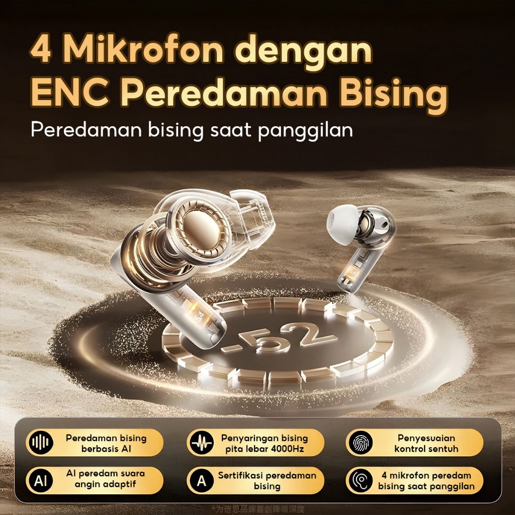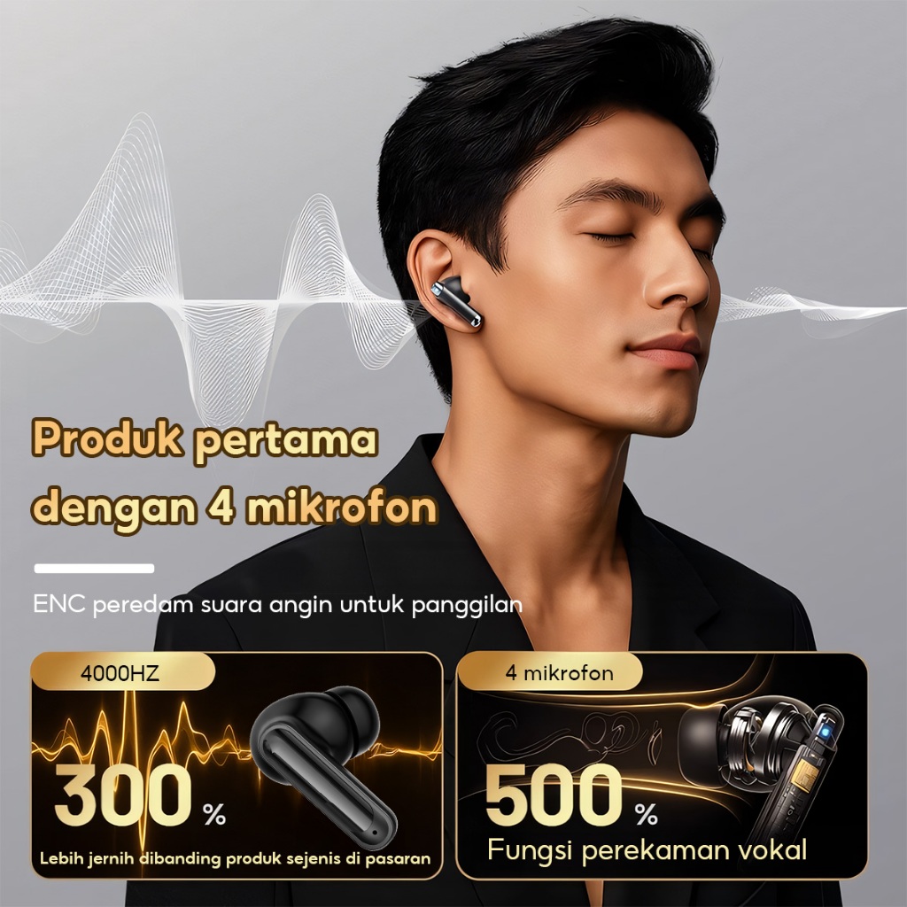 [Tiba di 6H] Hanason TWS Earphone In-ear Adaptive ENC | Low latency Headset | 4-Mic ENC, IPX5 Waterproof Bluetooth 5.4 |