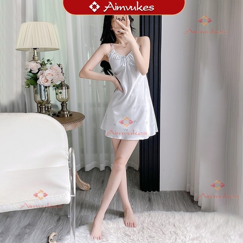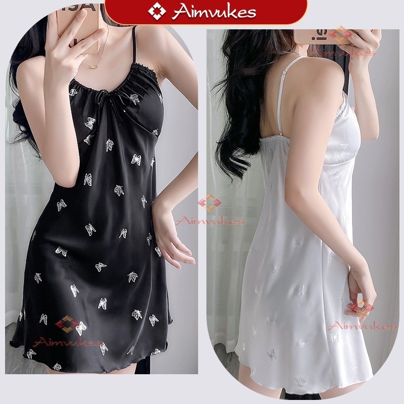 FLASH SALE Dress Pendek Piyama Wanita Dress Mini Daster Santai Kupu kupu Dress Tidur Ice Silk Adem(Bantalan Dada)