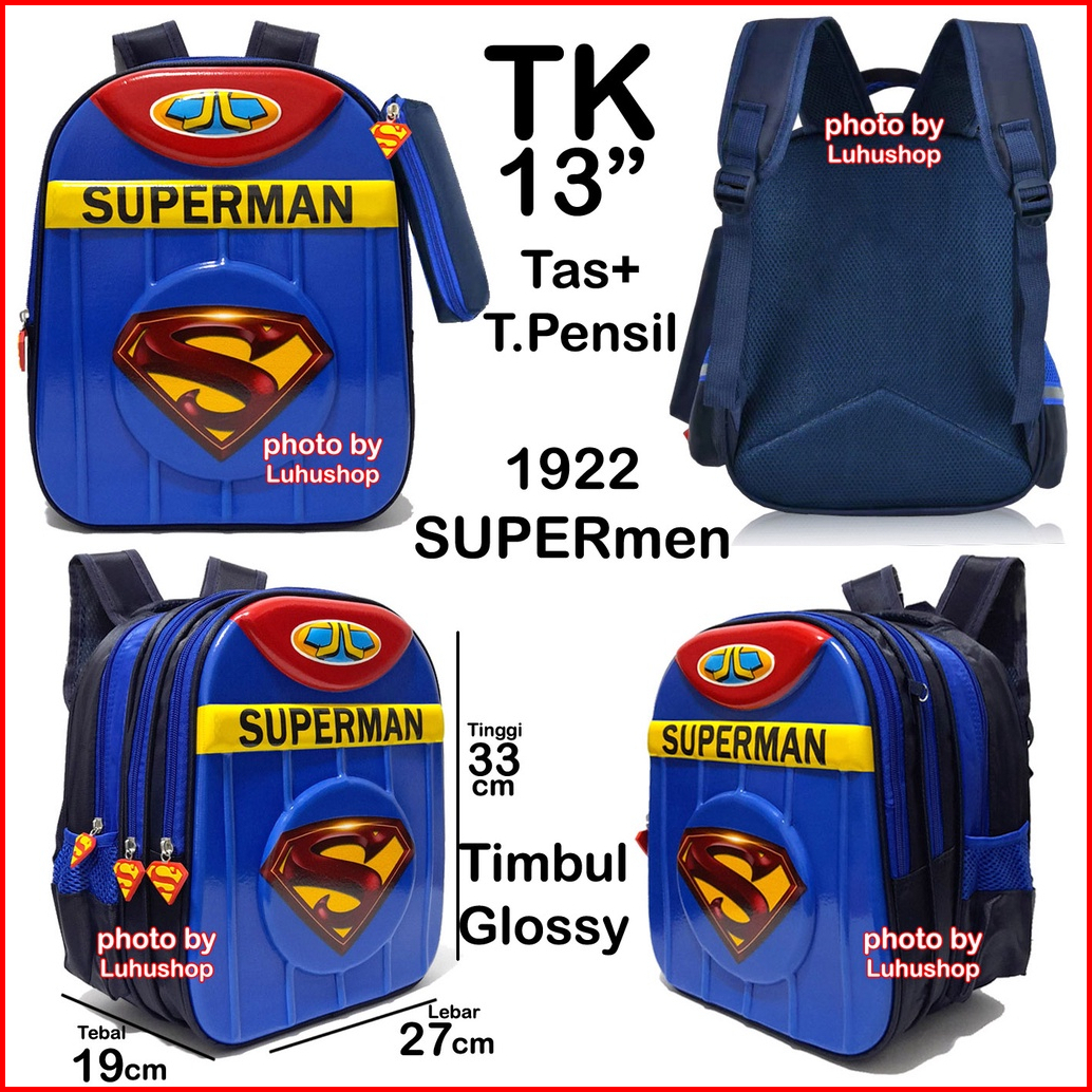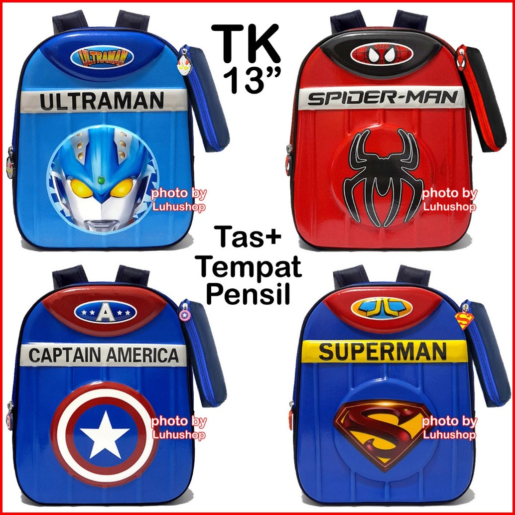 Tas Glossy Timbul Tempat Pensil Tas Ransel Sekolah Anak Sd Tk Tas Anak Laki-laki Spidermen Ultraman Captain Batmen Super