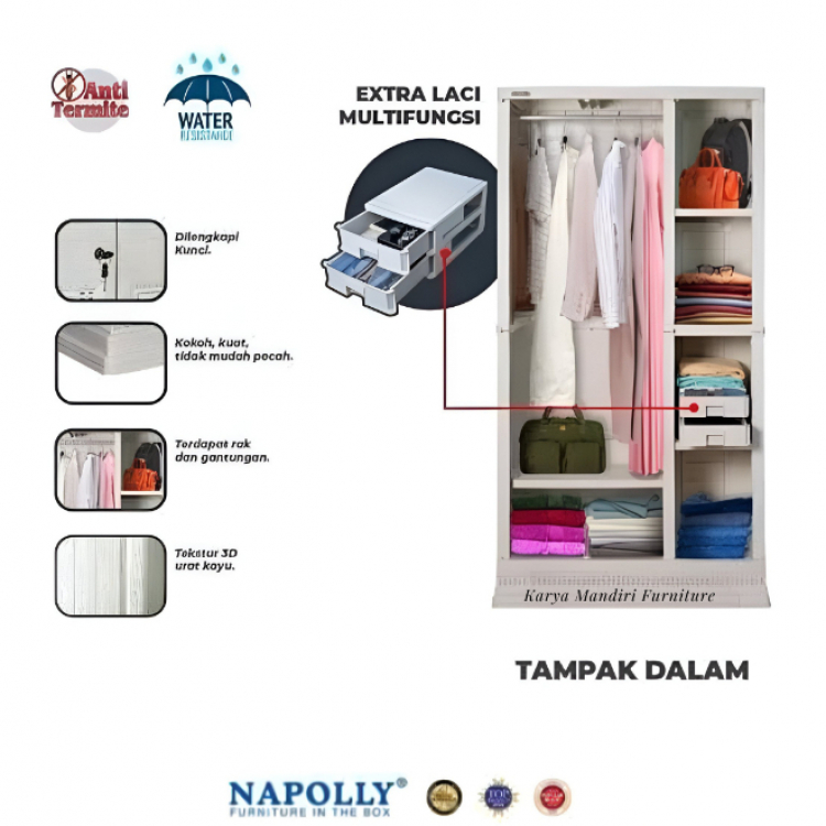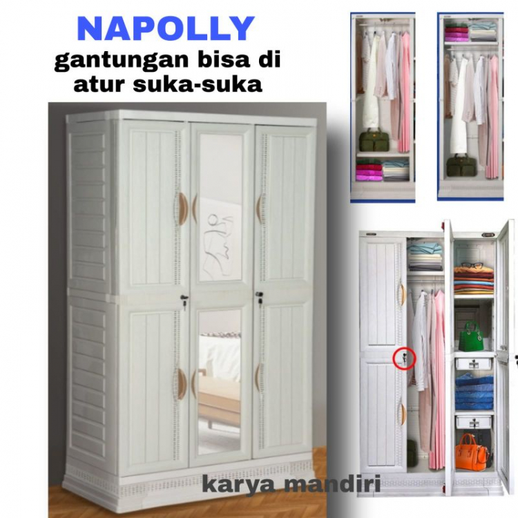 Lemari Baju Pakaian - Lemari Napolly - Lemari Plastik 3 Pintu - Penyimpanan Pakaian - Napolly 3 Pintu Gantung - Cth5