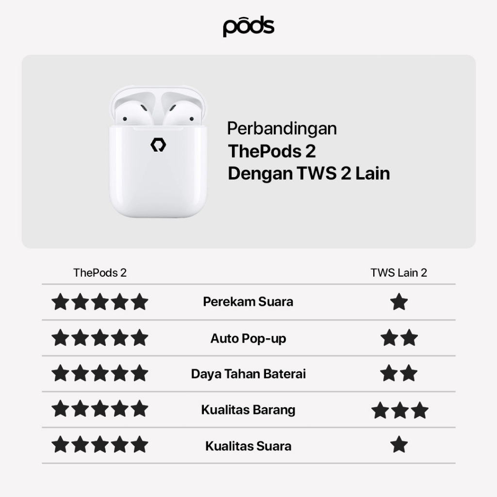 [BEST SELLER] ThePods 2 Generation TWS Earphone Headset True Wireless Stereo - Wireless Charging Case Final Upgrade - (I