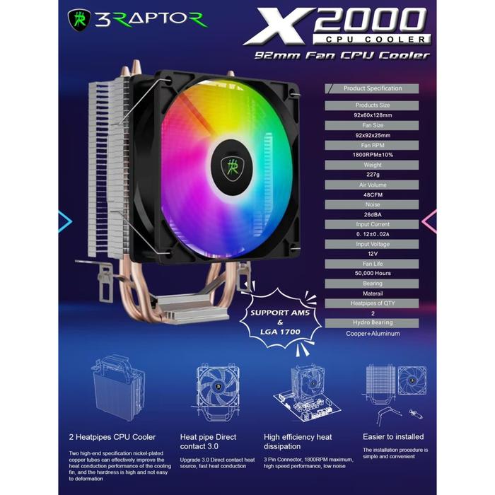 RAPTOR X2000 AUTO RGB FAN - CPU COOLER