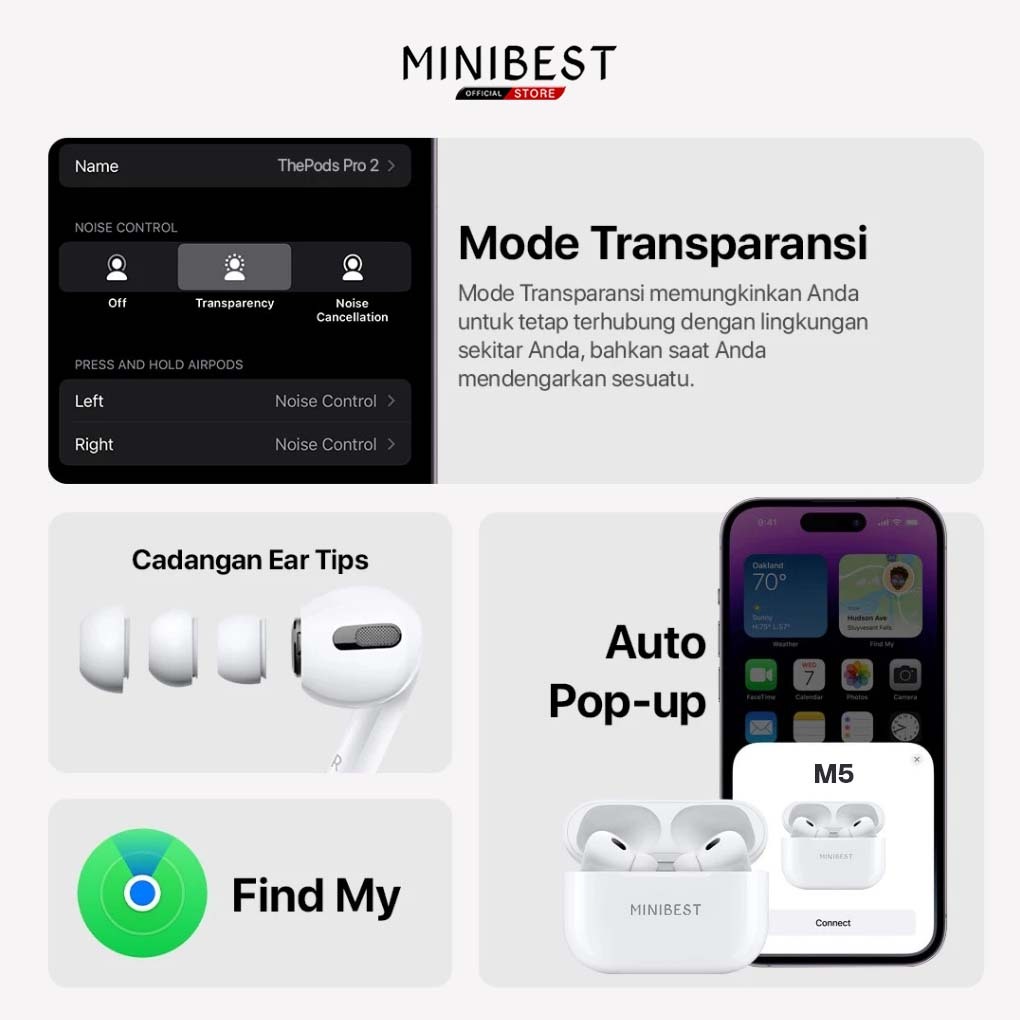 MINIBEST M5 Pro 2 TWS Earphone Headset Bluetooth V5.3 Chip H2 Wireless Charging Sound Dolby Quality
