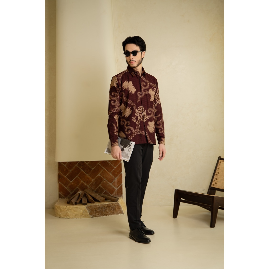 Batik Ayman - WICAKSANA MAROON LENGAN PANJANG | Kemeja Batik Pria Katun Dobby / Doby Premium Lengan Panjang