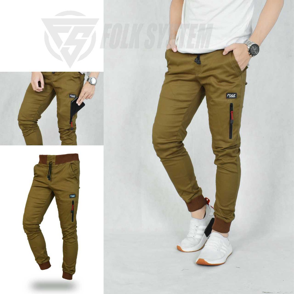 Celana panjang Chino joger zipper sleting
