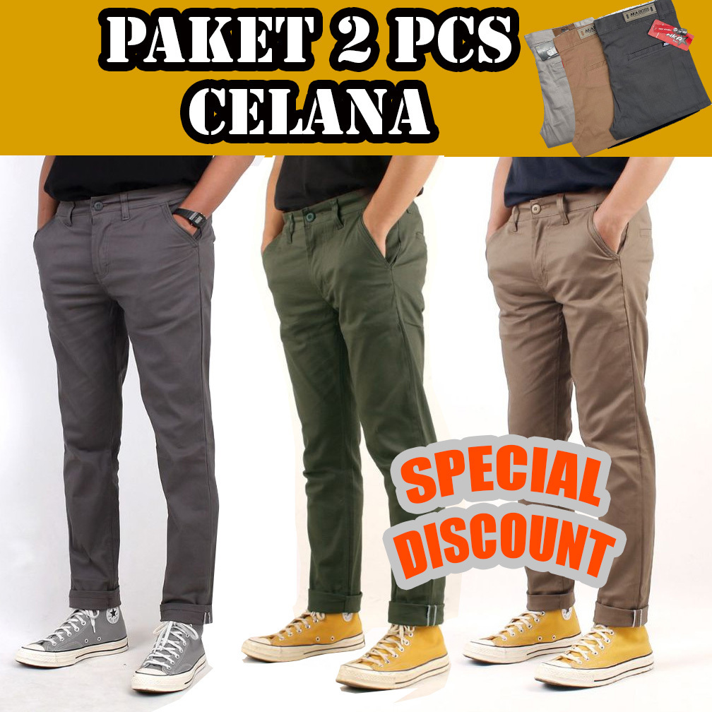 PROMO 2PCS 100RIBU Celana Chinos Panjang Pria Bahan Meral Chino Anak Laki Laki Dewasa Kerja Kantor Cowok Hitam Jumbo