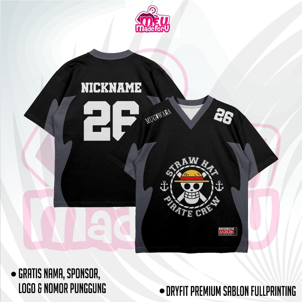 FLASH SALE Baju WanitaPria MUGIWARA BLACK Edition ONE PICE Custom SukaSuka GRATIS NAMA DAN NOMOR PUNGGUNG