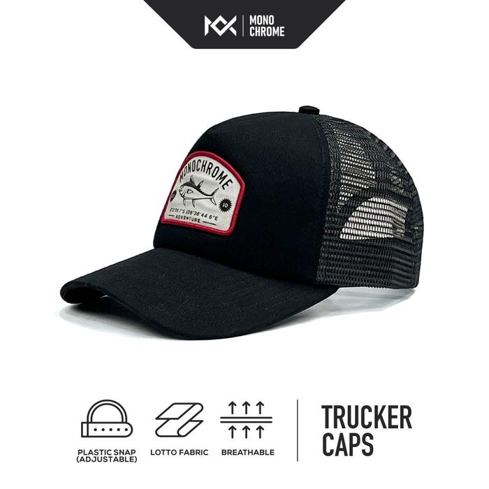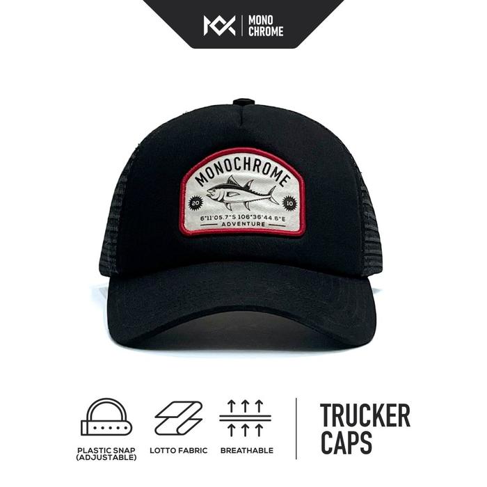 Monochrome Topi Pria Trucker Cotton Twill Hat Outdoor Black Tuna