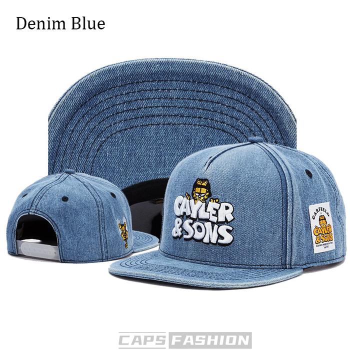 Topi Snapback Garfield hip hop Fashion bordir merek tide untuk pria dan wanita caps hat topi cowok Jeans Bordir - Blue