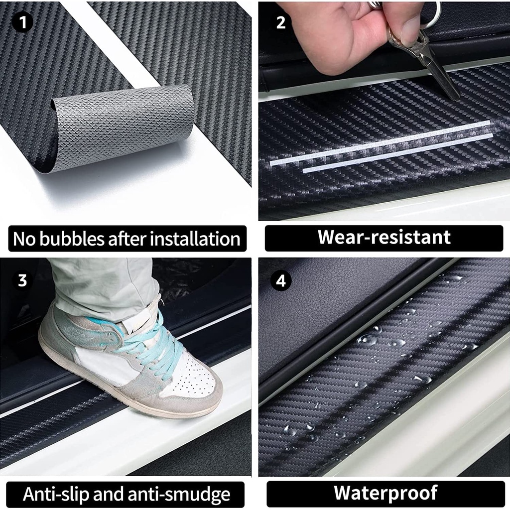 FLASH SALE 45pcs Stiker Strip Pelindung Pintu Mobil Strip Sill Guard Karet Stiker Perlindungan Ambang Mobil Serat Karbon Bak Truk Pedal Pintu 【Leleh】