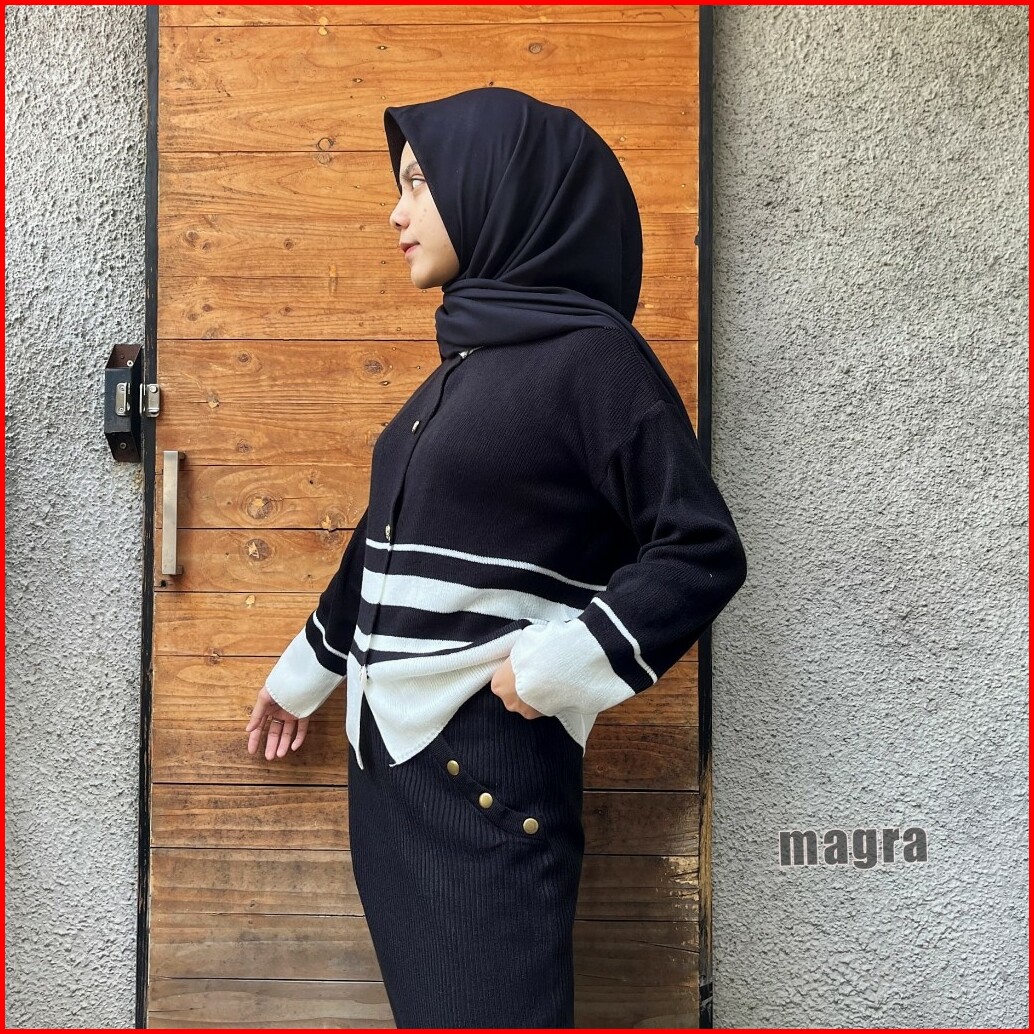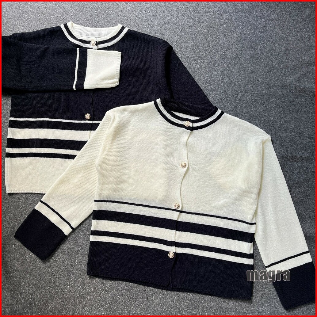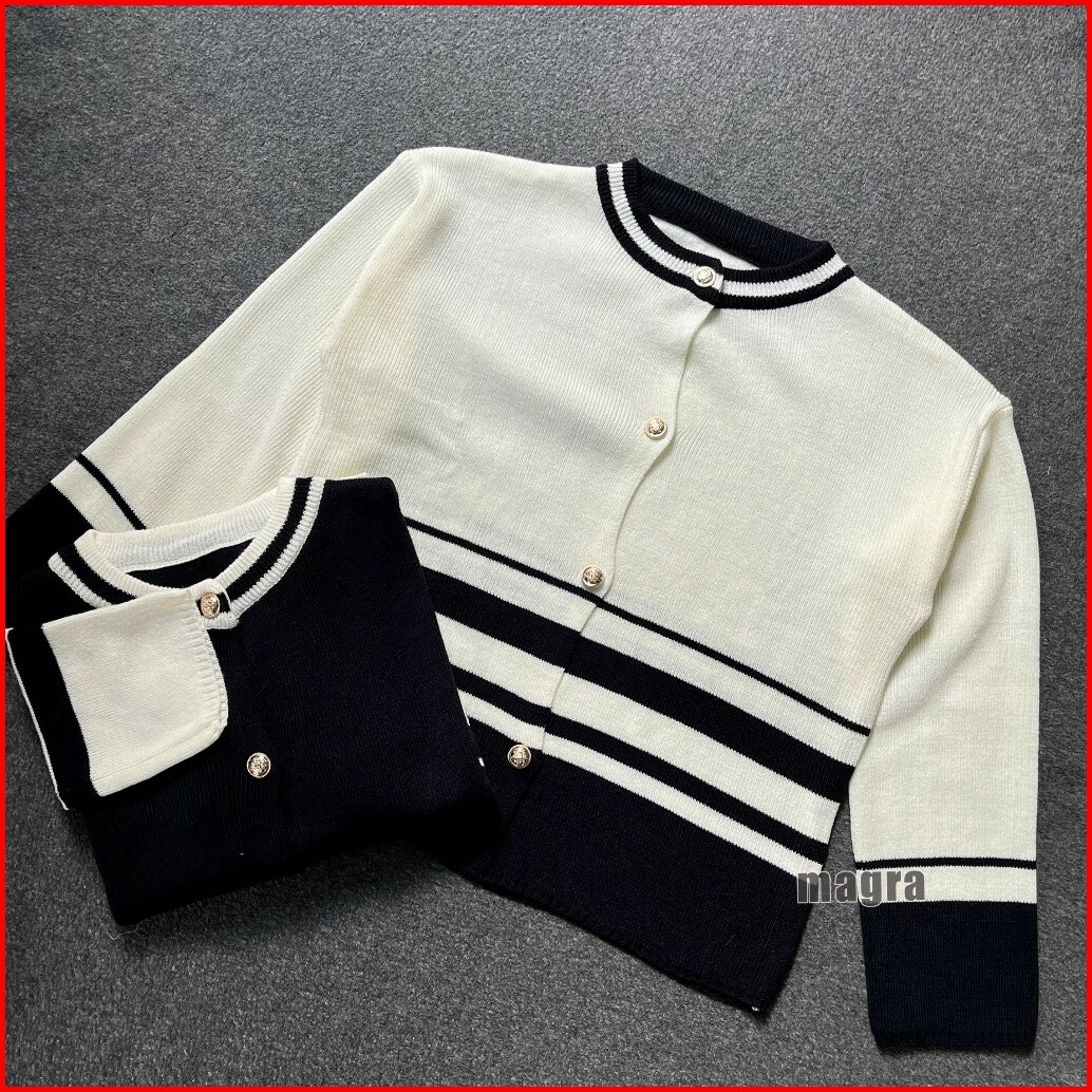 Gemma Cardigan Crop Rajut Halus - Knit Cardigan Basic Hitam Putih