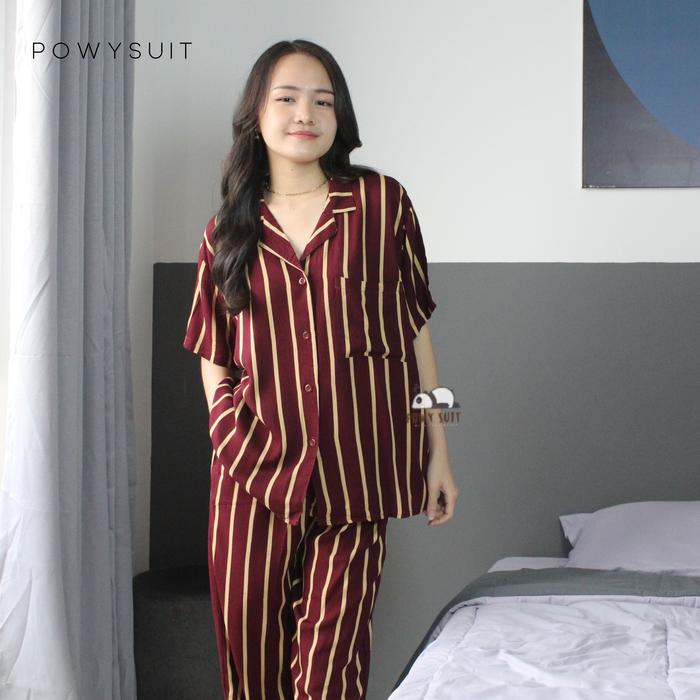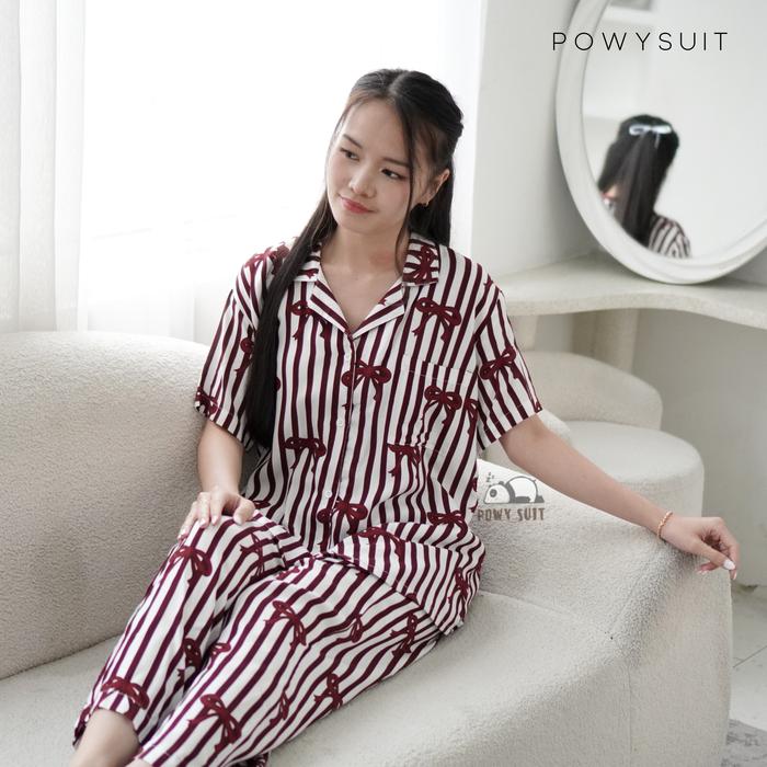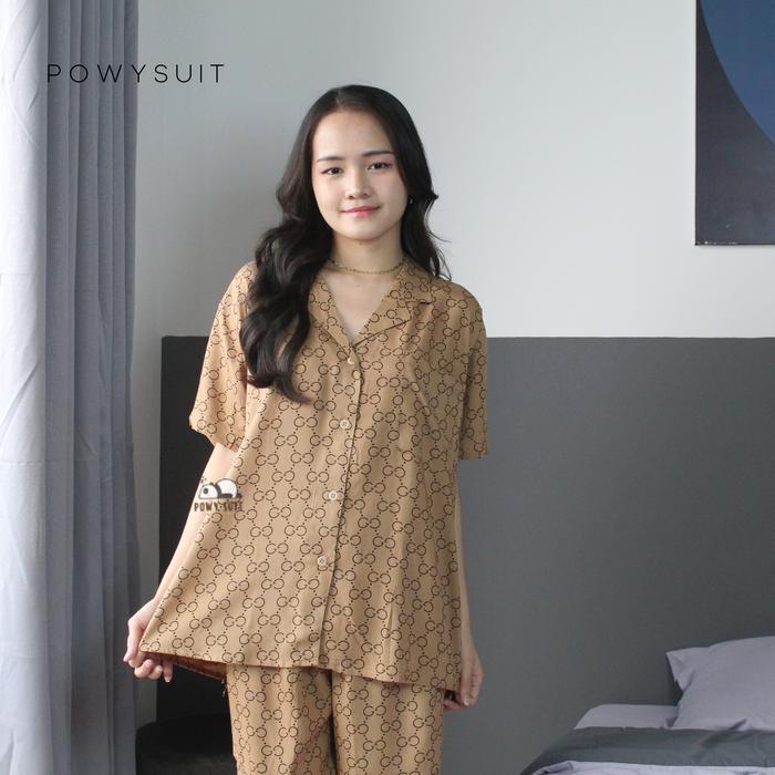 POWYSUIT PIYAMA RAYON WANITA MOTIF LENGAN PENDEK DAN SETELAN CELANA PANJANG - BAHAN RAYON BERKUALITAS TINGGI PART 2 BAJU TIDUR BUSUI - ST54 FOREST BLUE