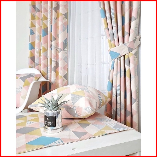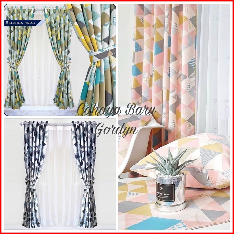 Gorden Blackout Motif Segitiga Kuning Hitam Pink Gorden Jendela Gorden Pintu Gorden Minimalis Hordeng Jendela Hordeng Pi