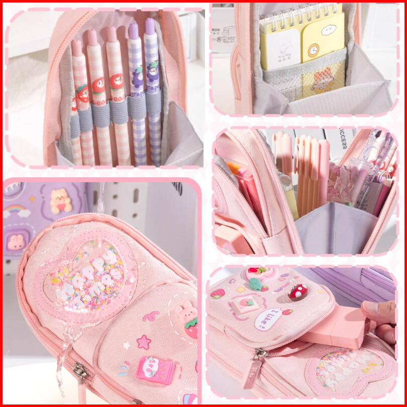 Tempat Pensil Kotak 3d Anak Perempuan Lucu Besar Kotak Pensil Kanvas 6 Ruang Kotak Pensil Anak Sekolah Tempat Pensil Kap