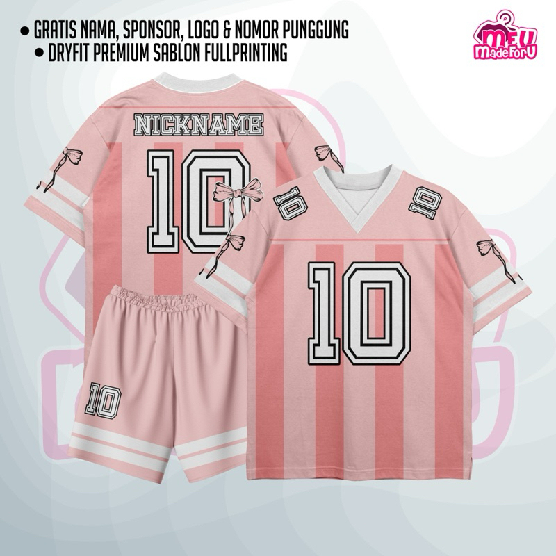 FLASH SALE Baju WanitaPria Korea Coqueete Ribbon PINK Custom Zumba Badminton Tennis Futsal Volly GRATIS NAMA DAN NOMOR PUNGGUNG