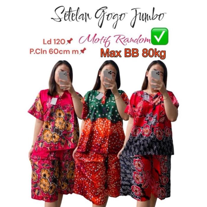 3 PCS ST GOGO JUMBO LD 120 GAMBAR HANYA REFRENSI MODEL, MOTIF DIKIRIM RANDOM SETELAN CELANA BAJU WANITA PIYAMA BUSUI JUMBO DASTER HITS - -, -