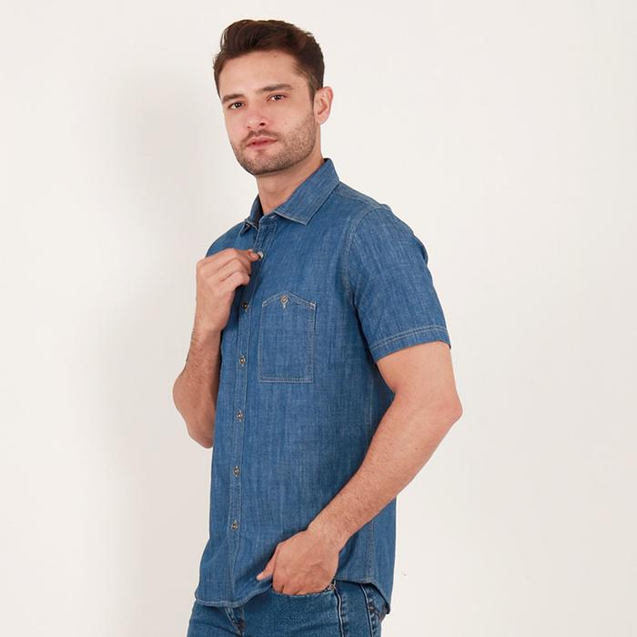 EDWIN JEANS - AYAKO 02 KEMEJA DENIM CASUAL PRIA LENGAN PENDEK SS - BAJU ATASAN T0P MAN SHIRT EDWIN JEANS FIT - BLUE, S