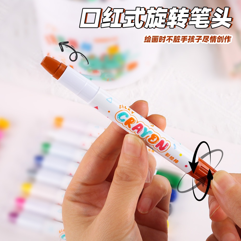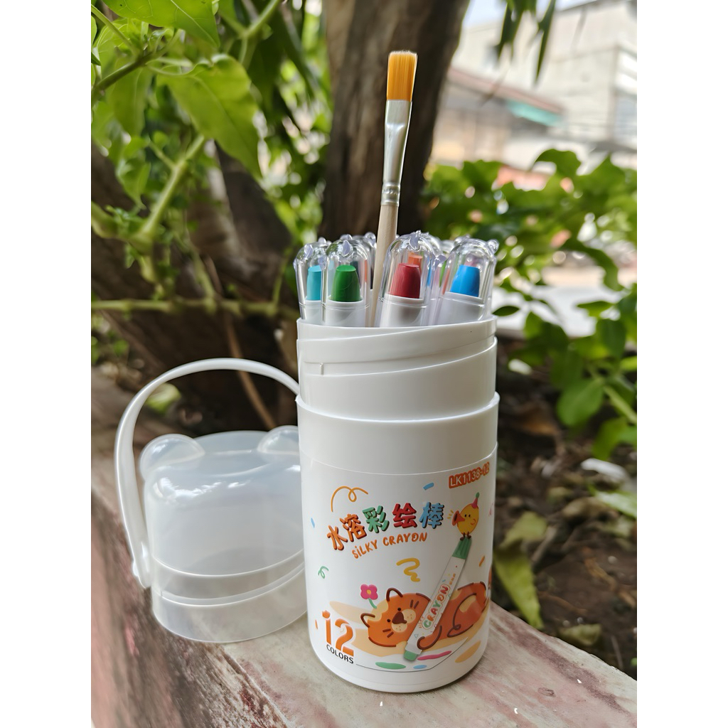 (Free Brush) Ready Stock LeXuan Crayon Sutra Putar Washable Silky Crayon 12 Warna Colorful Bucket Krayon Mewarnai Alat W