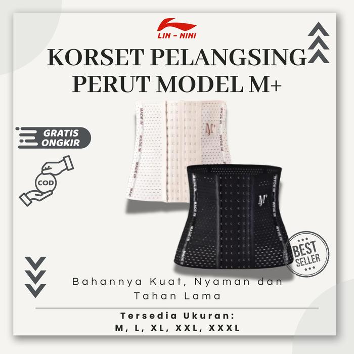 LINNINI KORSET PERUT TUBUH STAGEN SLIM BODY SLIMMING WANITA/PRIA WAIST SEAMLESS HIGH CORSET BOXER - HITAM, M