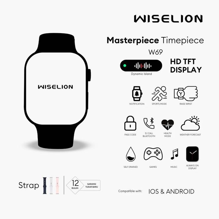 NEW WISELION Smartwatch W69 Bluetooth jam tangan digital Smart Watch Wanita Anti Air Jam Tangan