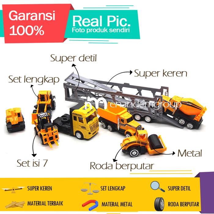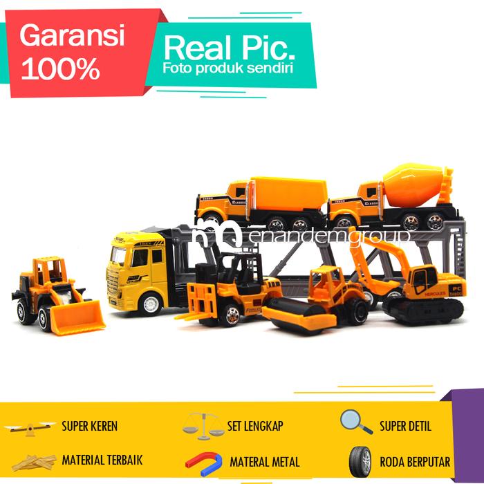 Mainan Mobil Anak Laki-Laki Kontainer Trailer Set Lengkap Mobil Konstruksi Metal isi 7
