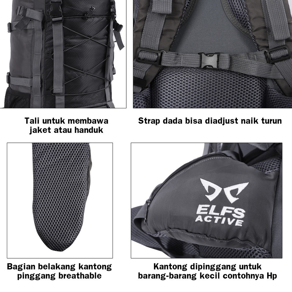 ELFS ACTIVE Tas Gunung Carrier 50 + 5L Ransel Tahan Air Backsupport Hiking Bag Water Resistant Bag FK0008 FREE RAINCOVER