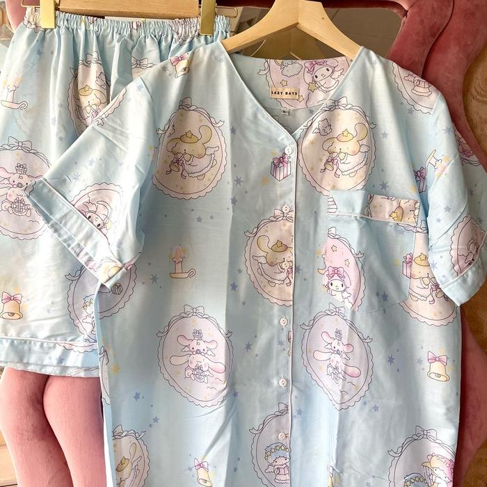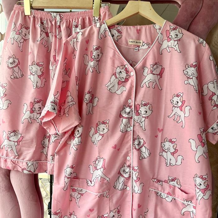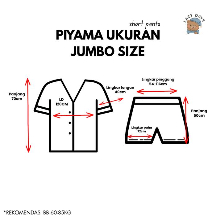 LAZY DAYS - JUMBO | PIYAMA KATUN SETELAN CELANA PENDEK (BIG SIZE) - LOTSO KOTAK2 PINK